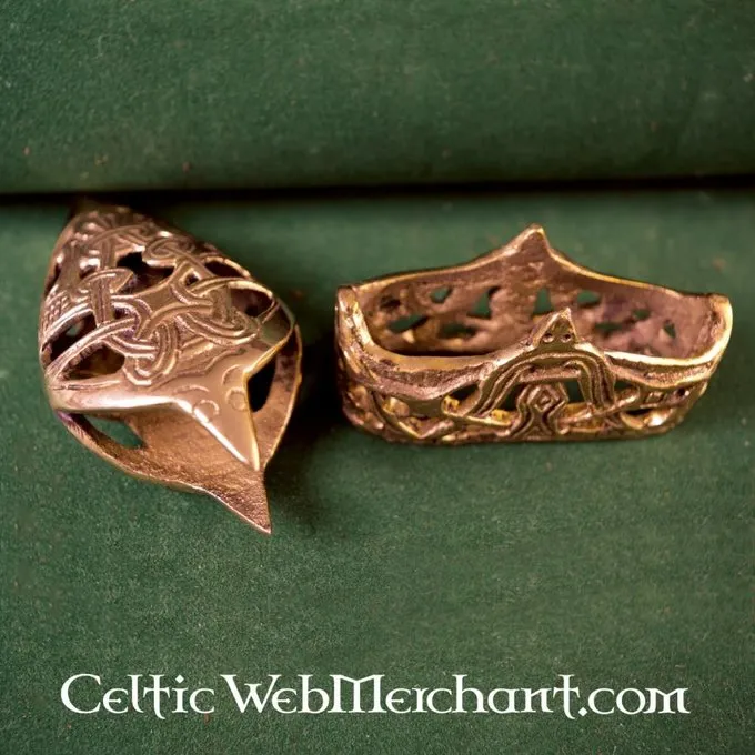 Dieser Beschlag basiert auf Vorlagen in Gotland ausgegraben. Armaturen wie diese wurden zwischen dem 10. und 11. Jahrhundert auf u.a. verwendet Wikingerschwerter. Diese Scheide Armatur aus Messing