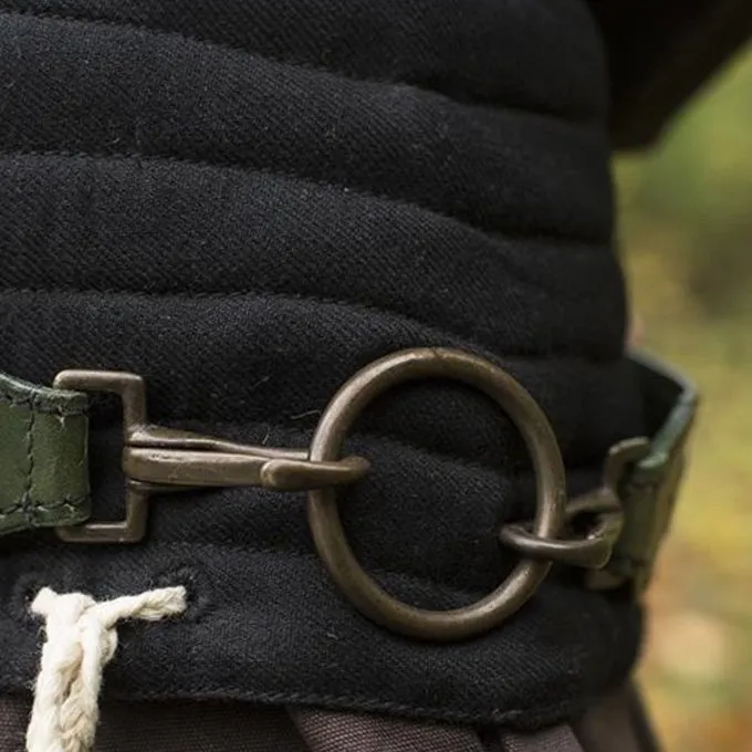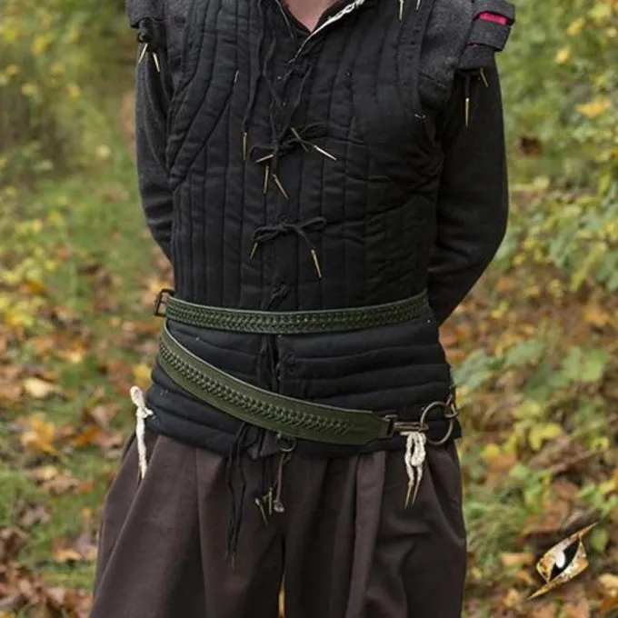 Solche Schwertgürtel wurden im Mittelalter und in der Renaissance getragen. Dieser Gürtel ist in einem authentischen historischen Stil mit einem schönen, handgeflochtenen Ledermotiv in der Breite dekoriert. Der Gürtel besteht aus zwei Teilen: Der obere Teil ist schmaler und wird um die Taille getragen, der untere Teil ist breiter und fällt um die Hüften. Der Gürtel hat einen Ring, um eine Scheide anzubringen. Mit diesem Gürtel kann Ihr Schwert über einen längeren Zeitraum bequem um Ihre Taille hängen.