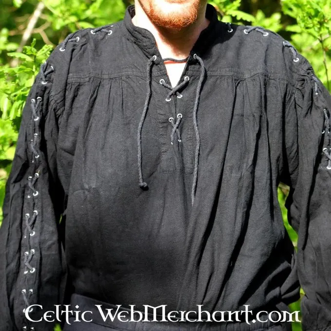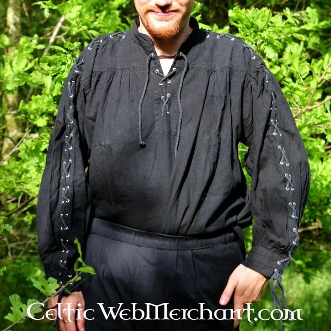 Dieses handliche Shirt eignet sich separat oder unter einer Dublette oder Weste zu tragen. Es hat Schnürbänder für einen authentischen Look. Das Shirt ist in den Farben schwarz, rot, braun und grün erhältlich.