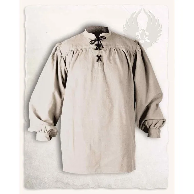 Dieses Shirt ist für Cosplay, Larp und Nachstellung geeignet. Das Hemd besteht aus Baumwoll -Leinwand. Es hat einen Schnürverschluss, der offen oder geschlossen werden kann. Die Ärmel des Hemdes sind sehr weit geschnitten. Dies gibt dem Hemd eine zusätzliche Bewegungsfreiheit, die das Tanzen oder Kampf erleichtert. Die breiten Manschetten sind mit einer Spitze geschlossen. Das Shirt ist in vielen verschiedenen Farben und bildet eine gute Grundlage für viele verschiedene Kostüme.