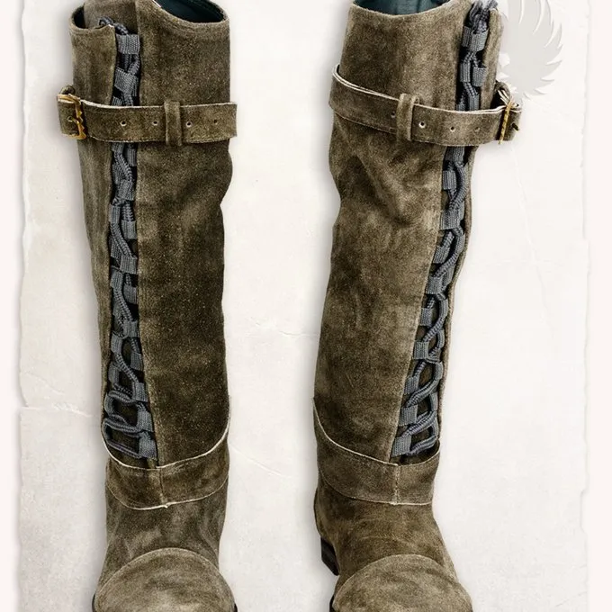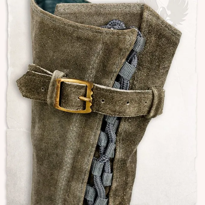 Diese Mytholon Stiefel sind perfekt für LARP und Cosplay Kostüme von Piraten, Musketiere, Wilder Westen, Van Hellsing und vieles mehr. Die Stiefel sind hoch und erreicht bis zum Knie. Sie können sie auch umklappen und tragen sie als untere Stiefel. Am Anfang haben die Stiefel einen festen Sitz, aber nach und nach dem elastische Leder Ihrer Größe dehnt. Wenn Sie breite Füße haben, empfehlen wir, dass Sie 1 Größe größer zu wählen als das, was Sie normalerweise tragen. Die Sohlen sind aus wasserdichtem Kunststoff.