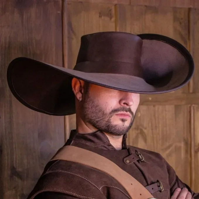 Die Hüte des spanischen Herstellers Rawblade bestehen aus hochwertigem Leder. Die traditionelle Handwerkskunst und die höchsten Qualitätsstandards garantieren eine lange Lebensdauer und dimensionale Stabilität. Ein Lederhut ist ein loyaler Begleiter bei schlechtem Wetter und ein wesentliches Accessoire für viele Kostüme. Dieser Hut ist perfekt für Musketierekostüme. Der Hut hat einen breiten Krempel, der sich ideal zum Verstecken in den Schatten Ihres Feindes versteckt. Ein großer Hut für Kampf gegen Duelle.